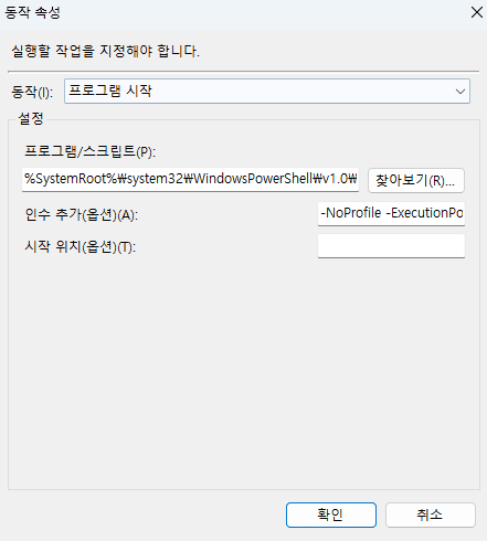 -NoProfile -ExecutionPolicy Bypass -File "{방금 만든 ps1 파일 경로}”