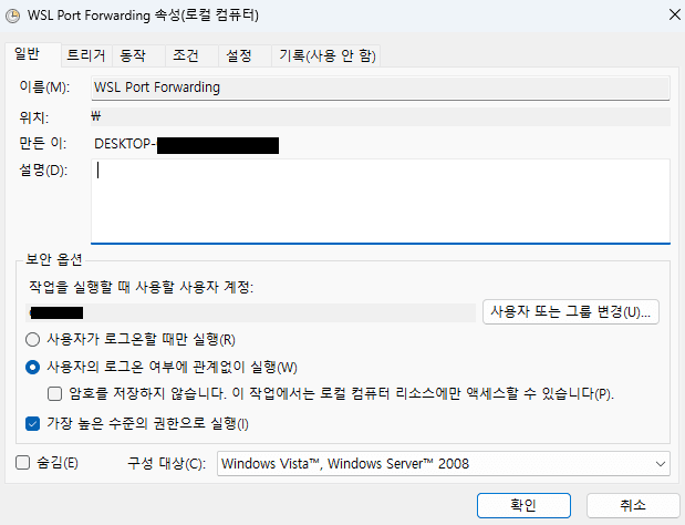이 스크립트는 부팅 시 WSL IP가 바뀌는 것을 잡아내는 역할을 하므로, 부팅 할 때마다 동작해야 합니다.